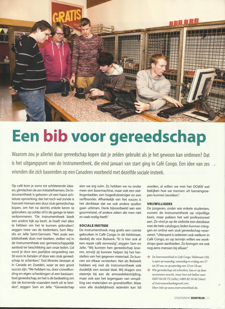 Instrumentheek vzw maakt zijn blijde intrede met een mooi artikel in de stadskrant Kortrijk in de editie van februari. Voor wie het artikel gemist heeft, u kunt het hier nog nalezen.